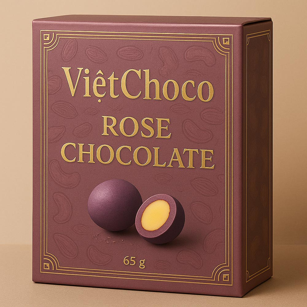 Vietchoco Rose Chocolate là sự kết hợp quyến rũ giữa hương thơm tinh tế của hoa hồng nhung, socola trắng ngọt dịu và ba loại hạt dinh dưỡng giòn bùi: hạnh nhân, hạt điều và mắc ca. Cánh hoa hồng được sấy thăng hoa giữ trọn mùi hương tự nhiên, hòa quyện trong từng viên socola, mang đến cảm giác cuốn hút đa giác quan – không chỉ ngon miệng mà còn đẹp mắt và đầy cảm xúc. Đây là món quà lý tưởng cho những ai yêu sự nhẹ nhàng, lãng mạn và đầy chất nghệ.